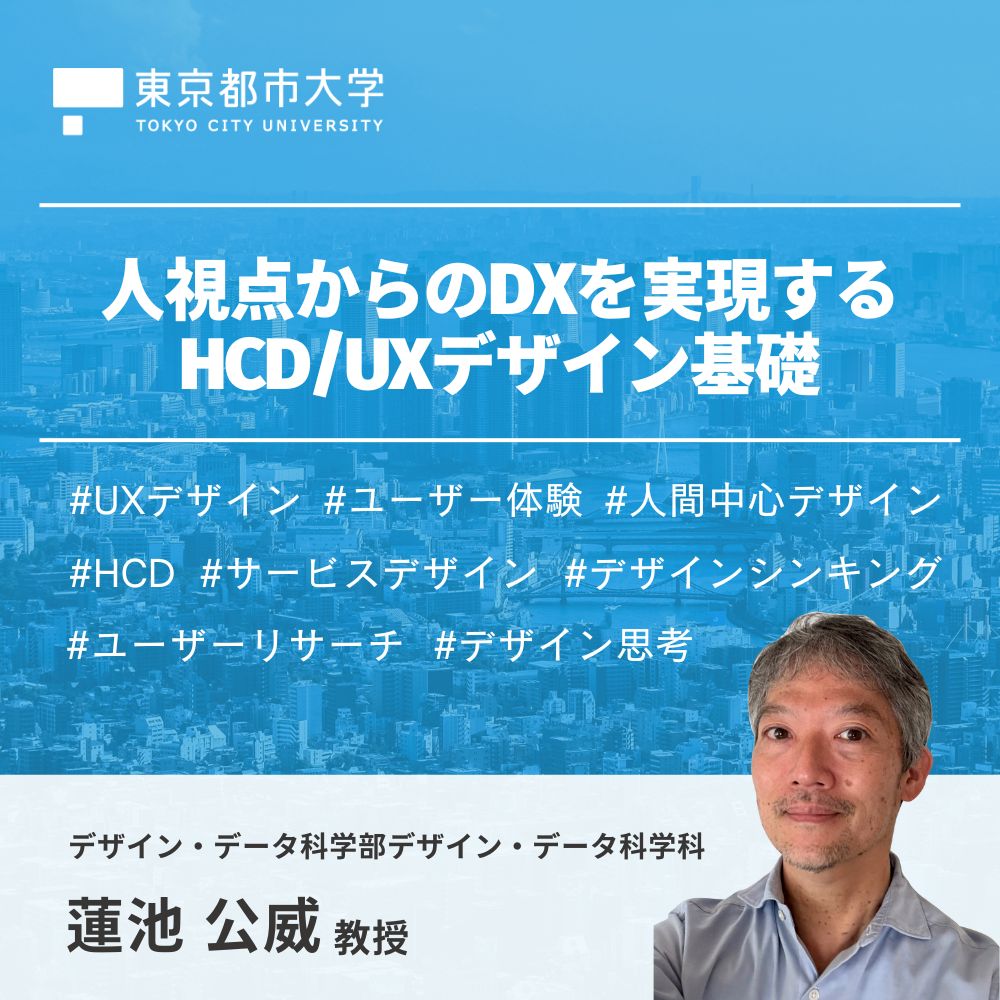 本講義では、DXに関わるすべての人を対象に、これらのスキルの基盤である「人間中心デザイン(HCD)」と「UXデザイン」について、その目的と概要、背景、DXとの関係を解説し、人視点からの価値創出の基本的知識と基本プロセスを学びます。