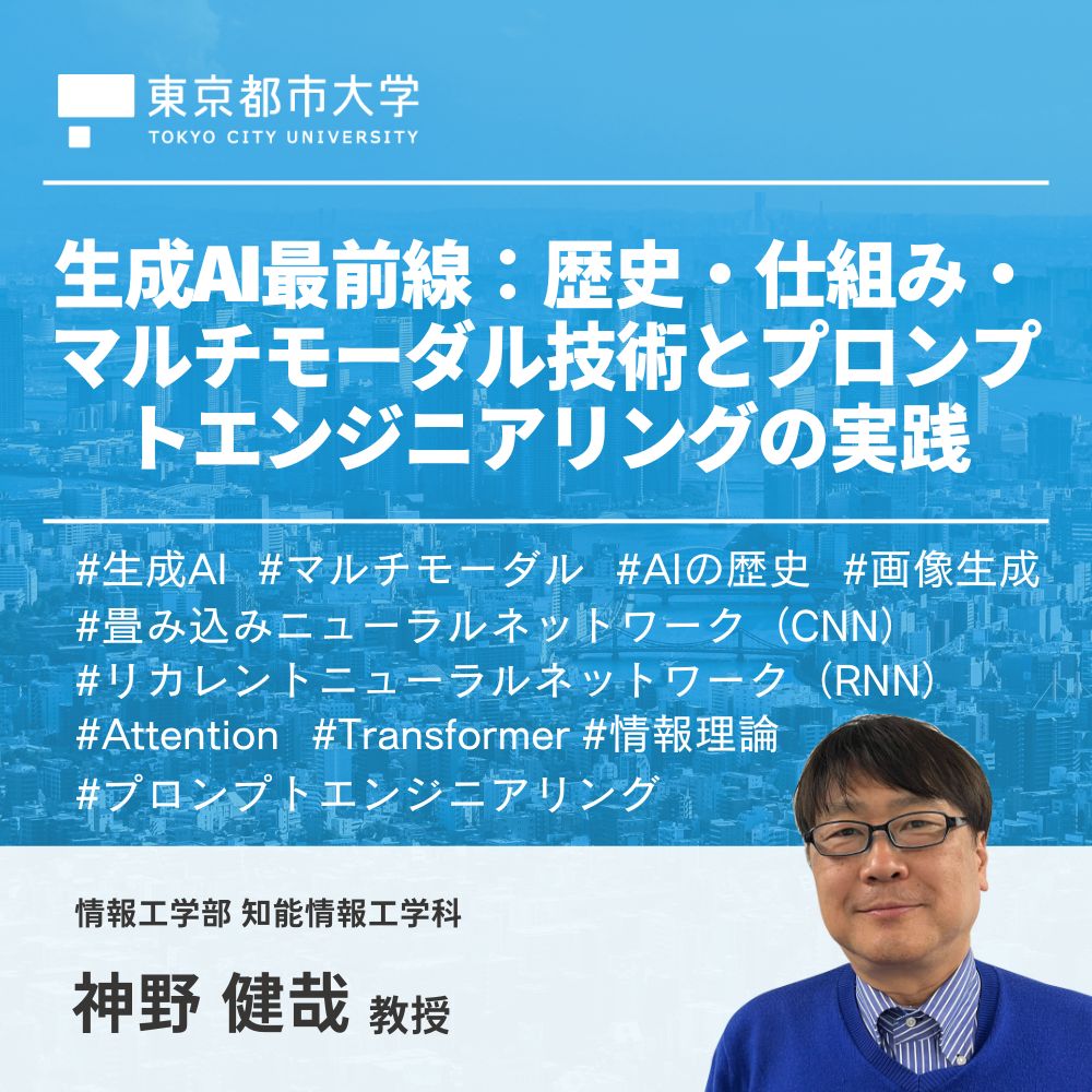 | 講義 | 生成AI最前線:歴史・仕組み・マルチモーダル技術とプロンプトエンジニアリングの実践 |